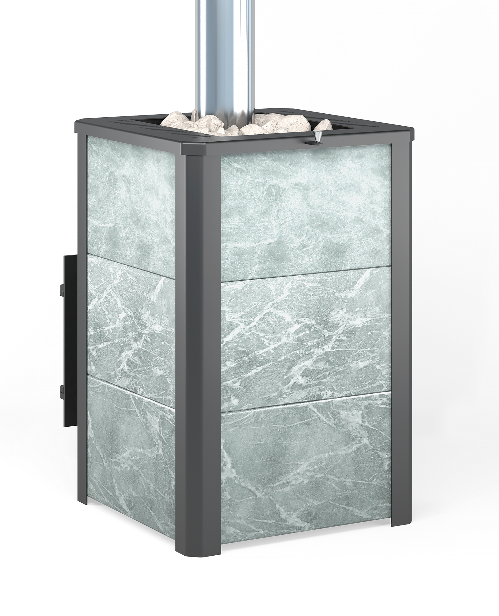 Конвекционно–вентилируемая облицовка, изготовленная из экологически чистой горной породы , который обладает большой теплоёмкостью, что позволяет камню в короткие сроки нагреваться и максимально долго удерживать стабильную температуру в парильном помещении, а также гасить жёсткое инфракрасное излучение Камень обладает исключительными лечебными свойствами: помогает при головных болях, при нестабильном артериальном давлении, при простудных заболеваниях, воспалительных процессах в почках и пищеварительной системе, снимает повышенную возбудимость и нервозность, сглаживает эмоциональные всплески. Облицовка из натурального камня при нагреве способна аккумулировать тепло, что гарантирует максимально равномерный прогрев и сохранение тепла Банная печь Легенда 22 Панорама "М" талькохлорит укомплектован чугунной каминной, самоохлаждаемой дверцей Везувий 505 с большим жаропрочным стеклом «SCHOTT ROBAX», с оборудованной системой самоочистки, что позволяет визуально контролировать горение и любоваться видом живого огня. Данная печь рассчитана на объем парильного помещения 12-24 м3.Дымоход и комплектующие
