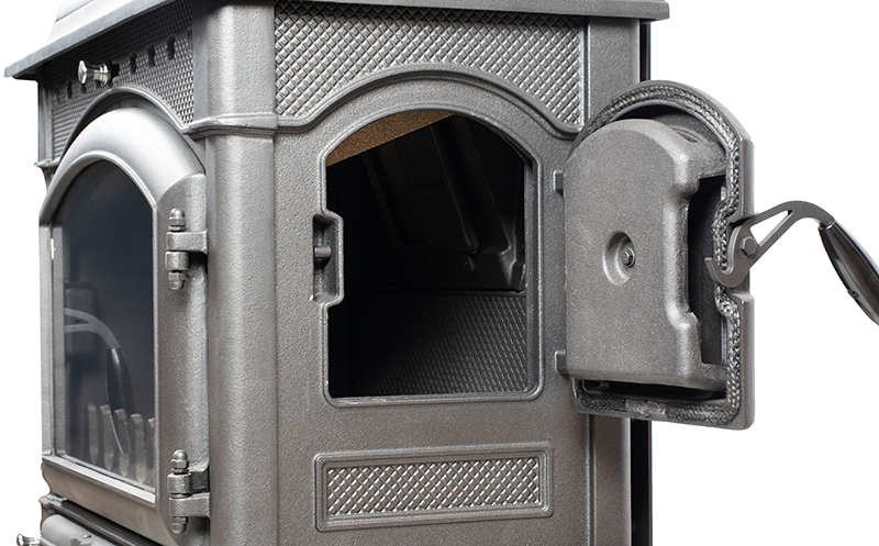 На дверке зольника расположена ручка регулировки интенсивности горения.