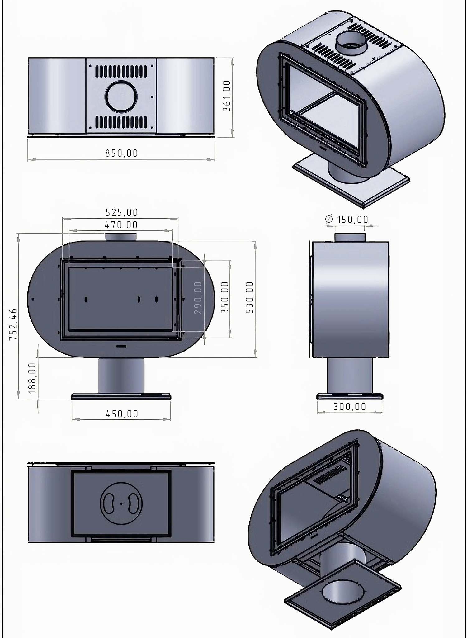 Для печи необходим дымоход диаметром 150 мм. Его можно подобрать в разделе дымоходы. Рекомендуем обратить внимание, что первыми элементами от печи могут быть дымоходы черного цвета из котловой стали,которые можно подобрать в разделе дымоходы КПД