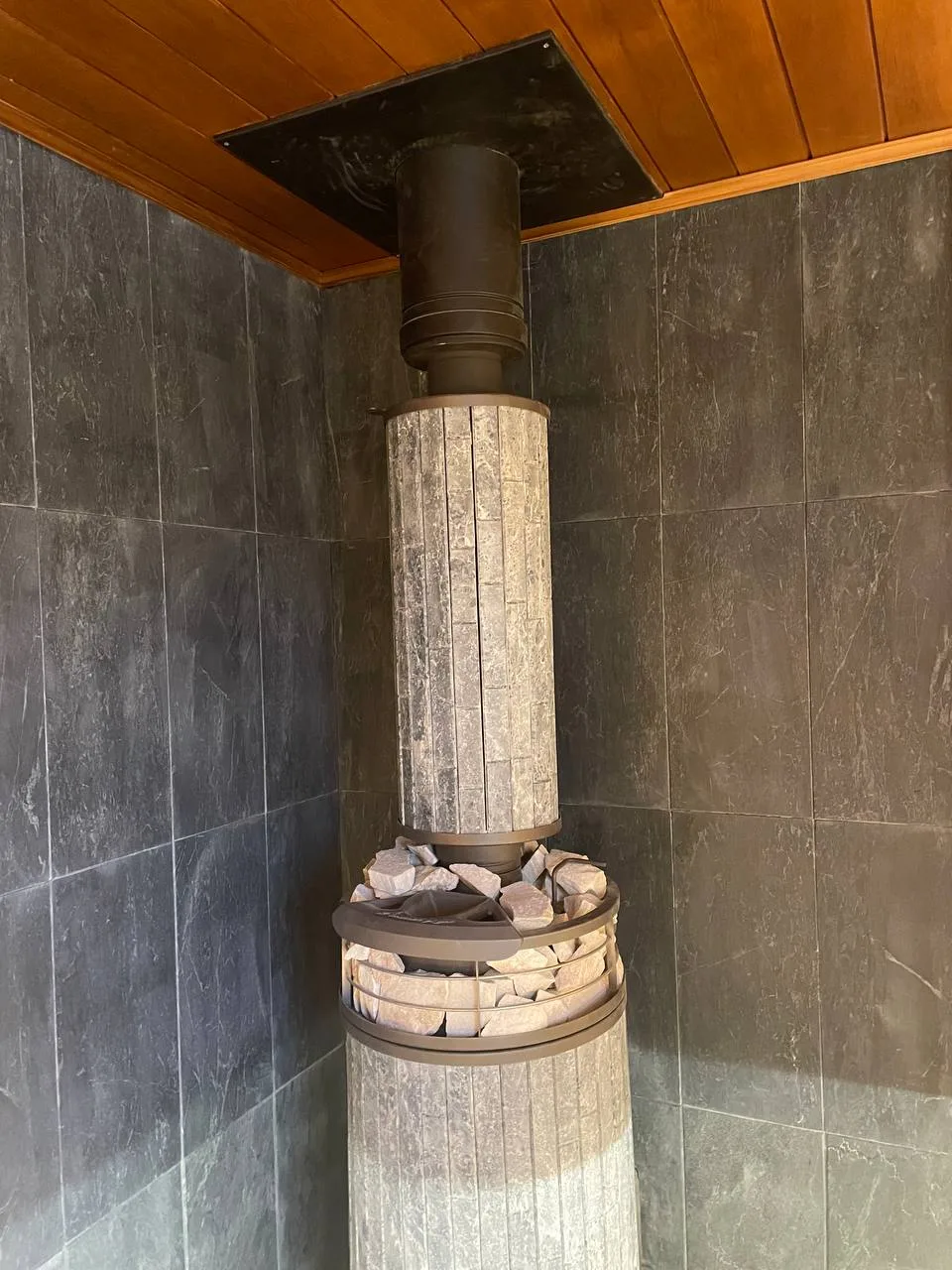 - Печь банная «Атмосфера » Талькохлорит ламель+сетка с тоннелем +Сетка-каменка ламель.Установлена в парной.Отделка Вагонка и полок - ольха и термоольха.